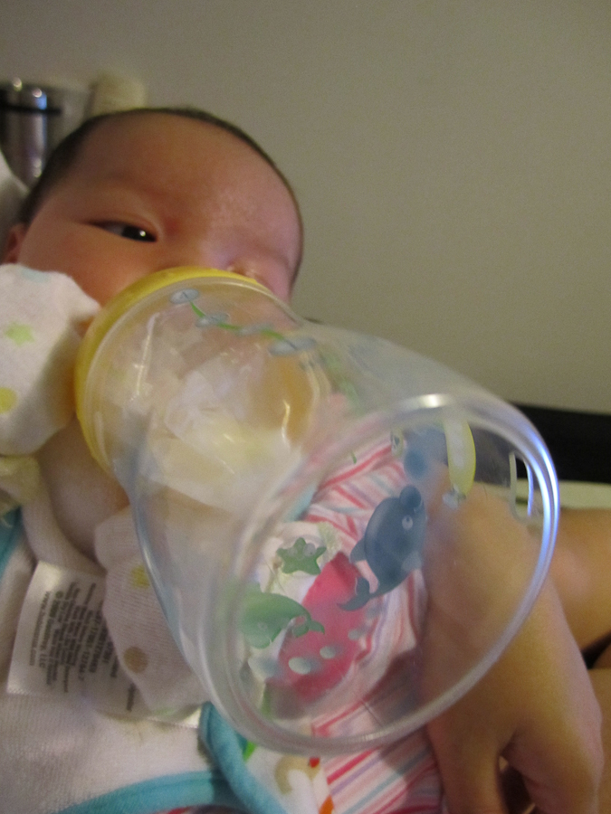 So hungry she’s holding her bottle.